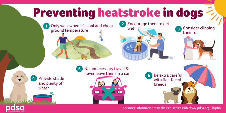 It’s vitally important to protect your dog from heatstroke, especially if they are flat-faced, overweight, or have a thick coat. There are some simple things that you can do to prevent it, such as: